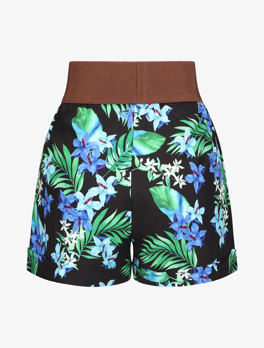 Short à taille haute style corset imprimé fleurs - Noir - 2