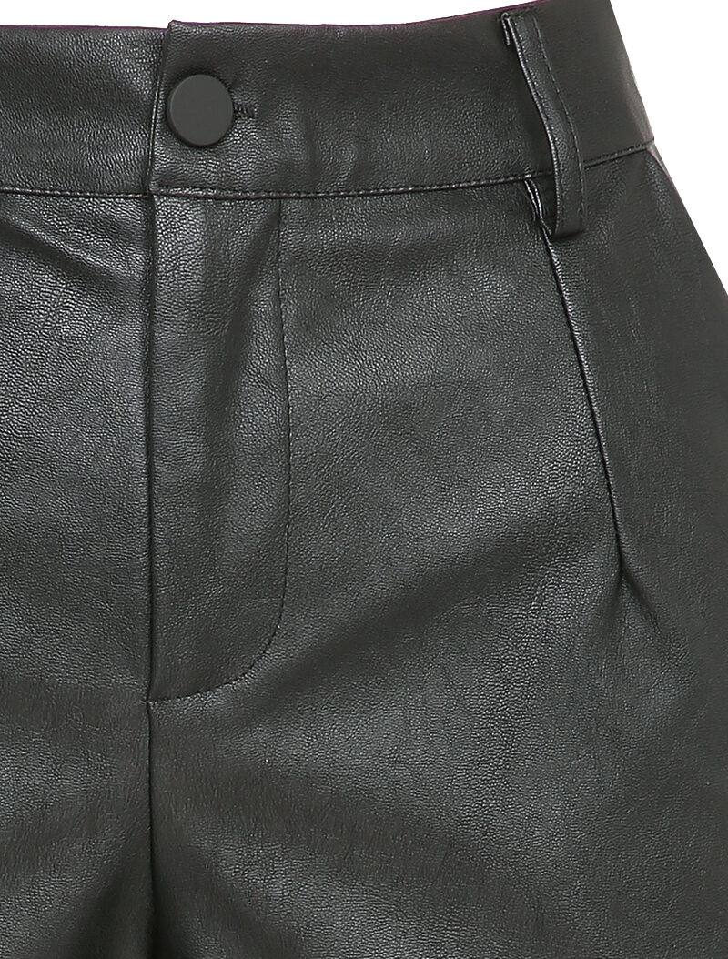 Short en simili taille haute pincée - Noir