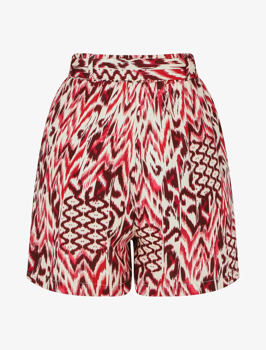 Short fluide imprimé abstrait et ceinturé - Rouge - 2