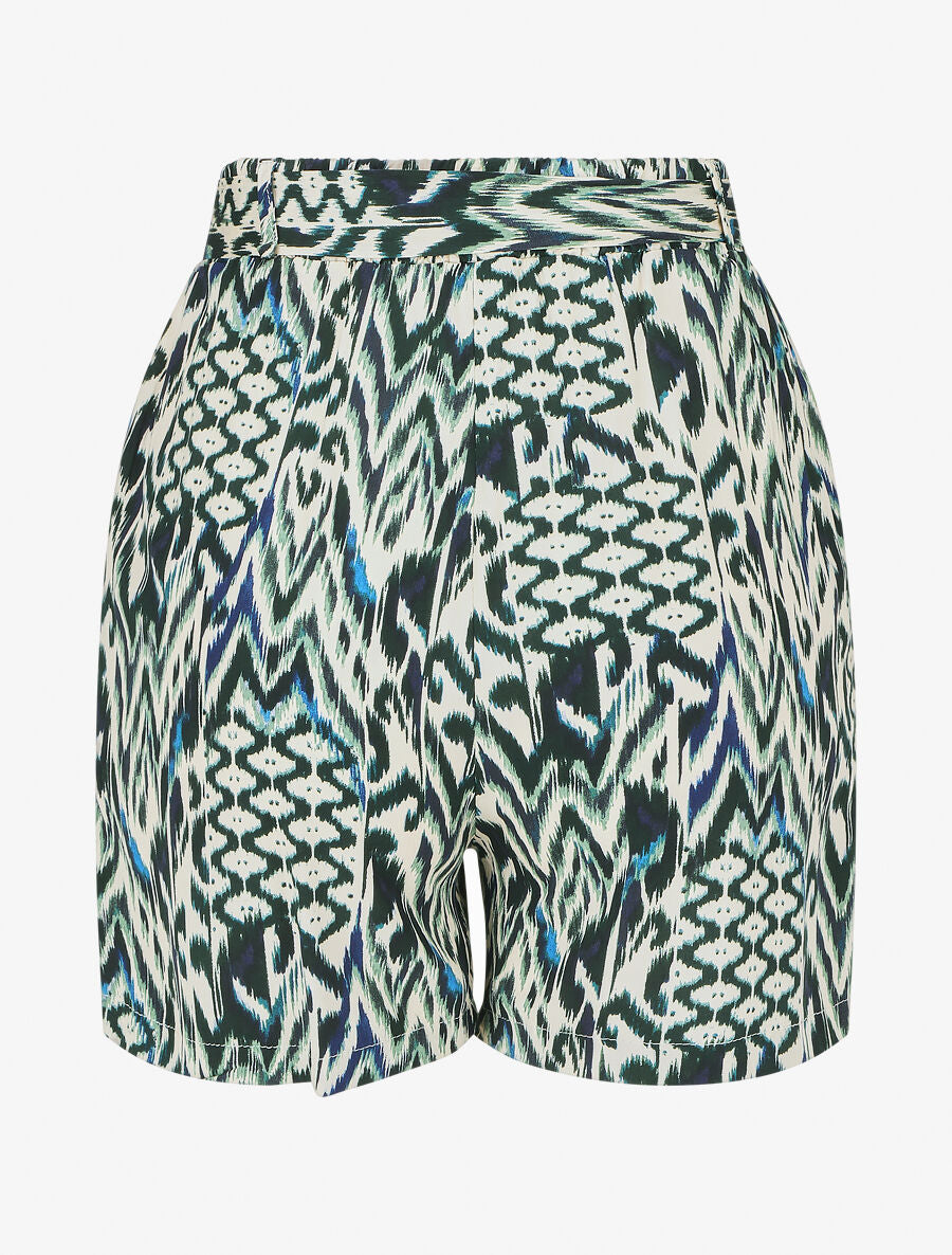 Short fluide imprimé abstrait et ceinturé - Vert - 1