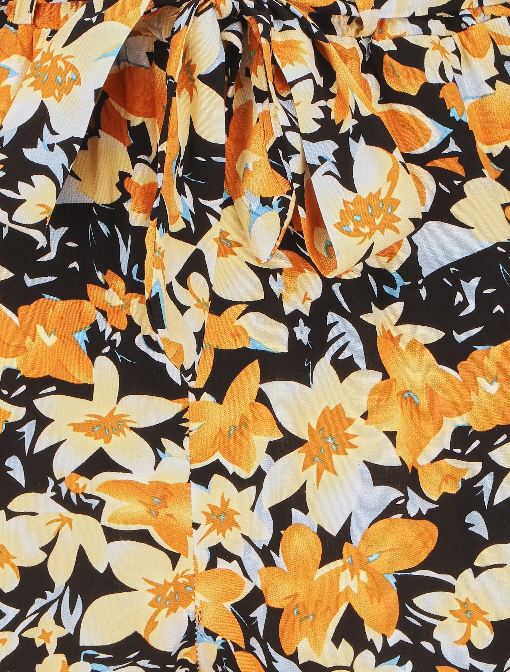 Short fluide imprimé fleuri et ceinturé - Noir - 2