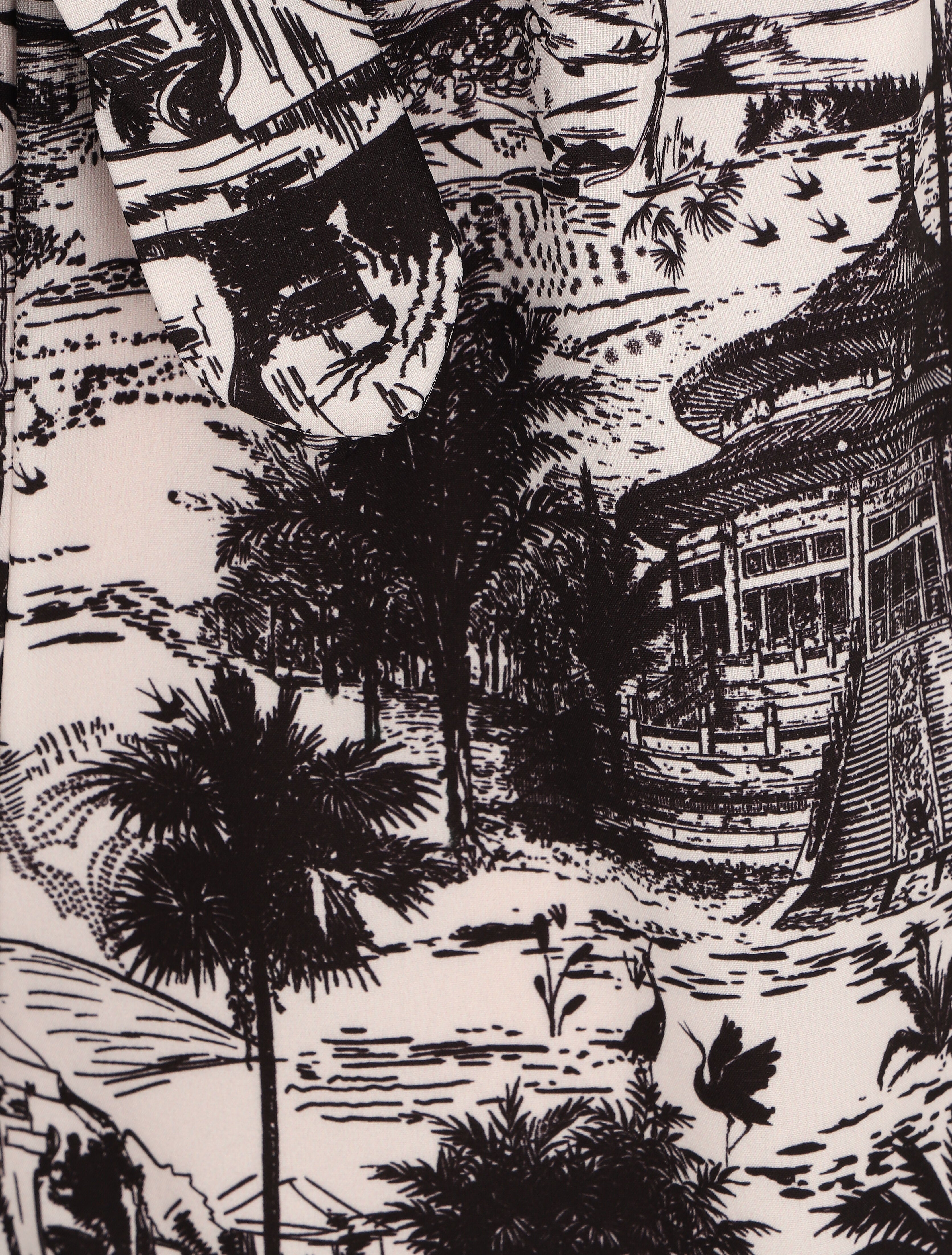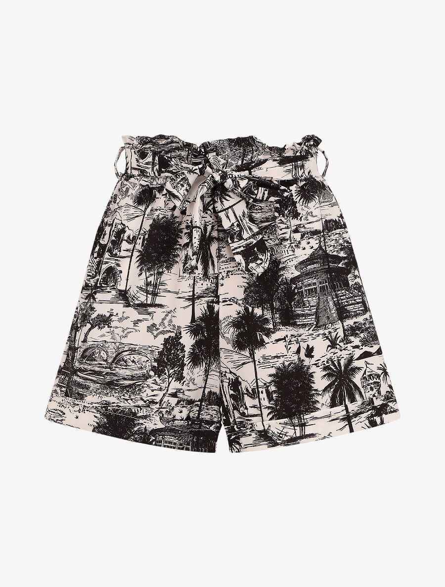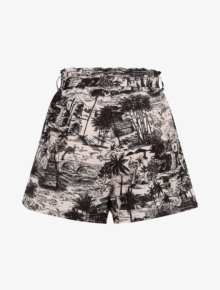 Short à revers imprimé paysage ceinture - Noir
