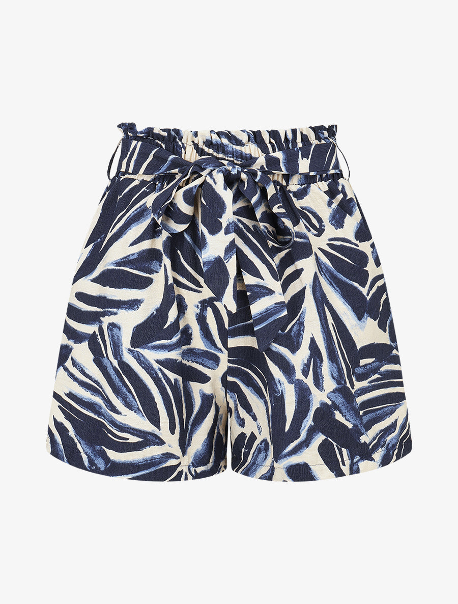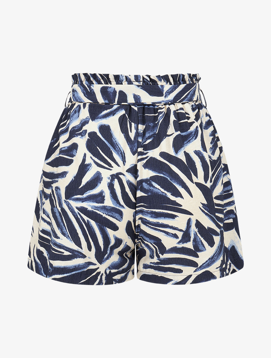 Short paper bag taille haute ceinture - Marine