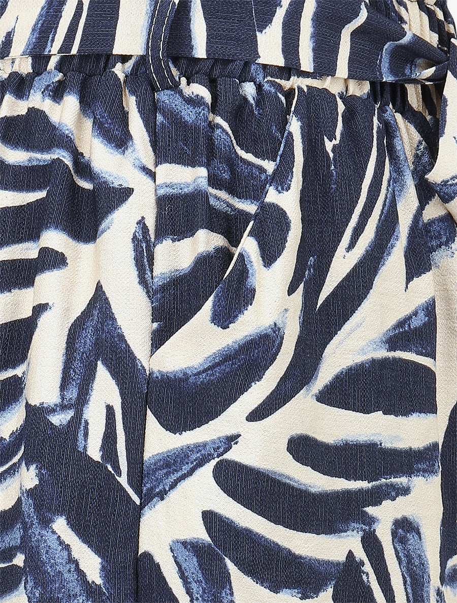 Adoptez ce short paper bag marine au motif abstrait pour un style estival raffiné. Sa coupe droite et sa taille haute élastiquée assurent un confort optimal tout au long de la journée. La ceinture à nouer permet d'ajuster la silhouette selon vos envies, tandis que les deux poches latérales apportent une touche pratique. Facile à enfiler, ce short en polyester se porte idéalement avec un top fluide ou un chemisier pour créer une tenue décontractée-chic parfaite pour vos sorties estivales ou vos moments de détente.