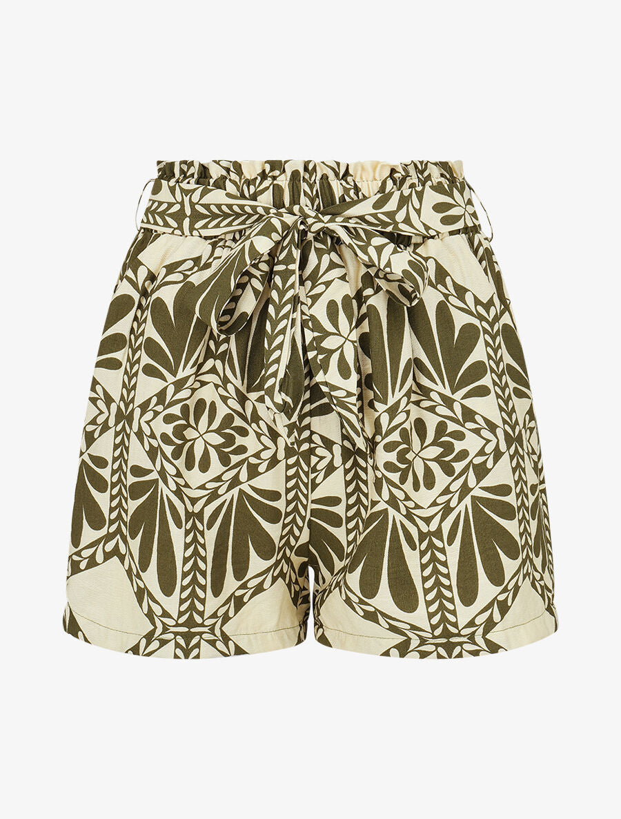 Découvrez ce short paper bag qui conjugue confort et style avec son imprimé ikat distinctif. Sa coupe droite et sa taille haute élastiquée assurent un ajustement parfait, tandis que les deux poches latérales ajoutent une touche pratique. Le modèle à enfiler facilite l'habillage au quotidien. Confectionné dans un mélange de viscose et polyester, ce short offre une texture fluide et agréable à porter. Idéal pour composer des tenues estivales décontractées ou habillées selon vos envies.