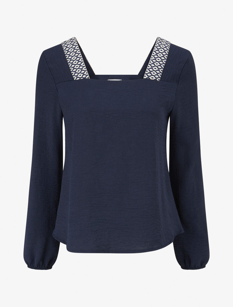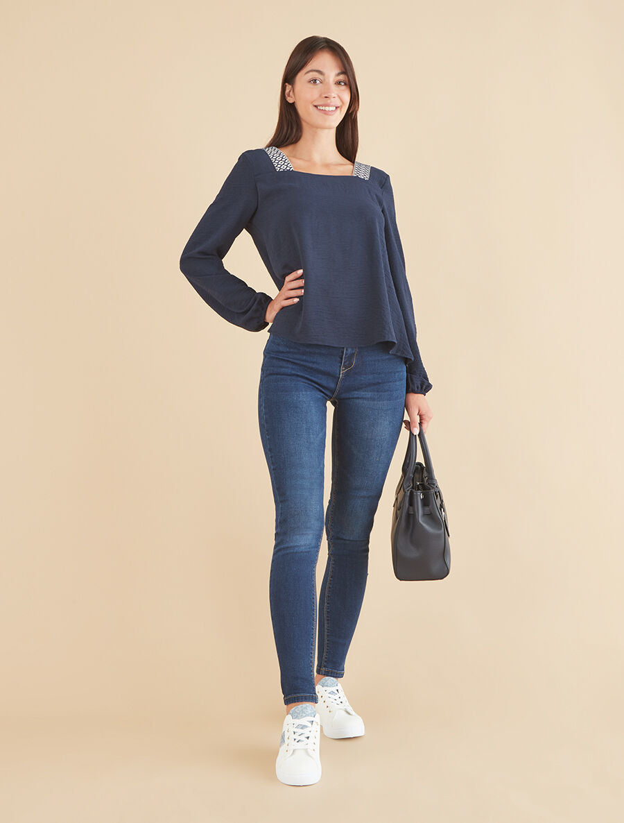 Top imprimé fantaisie col carré - Marine