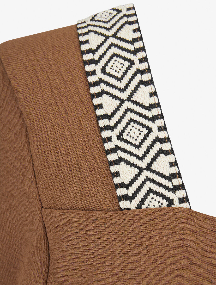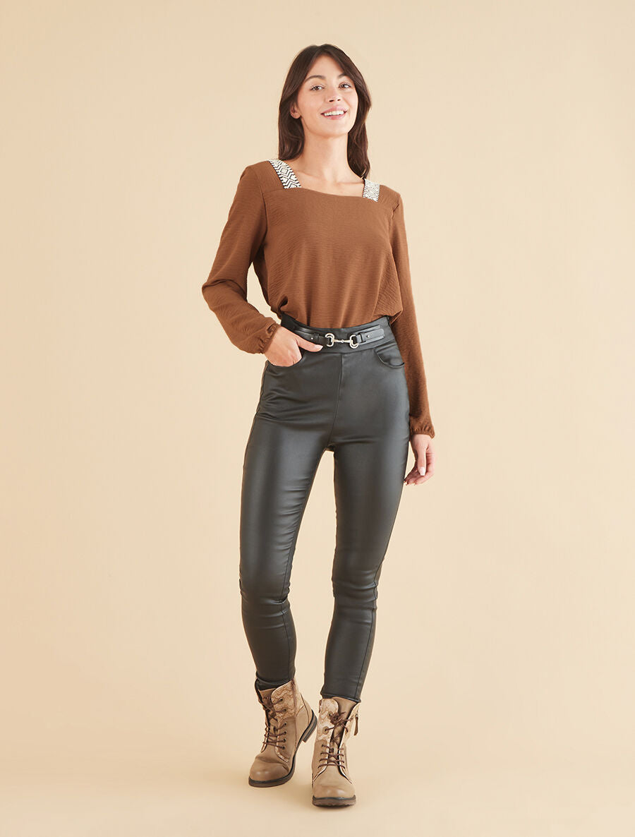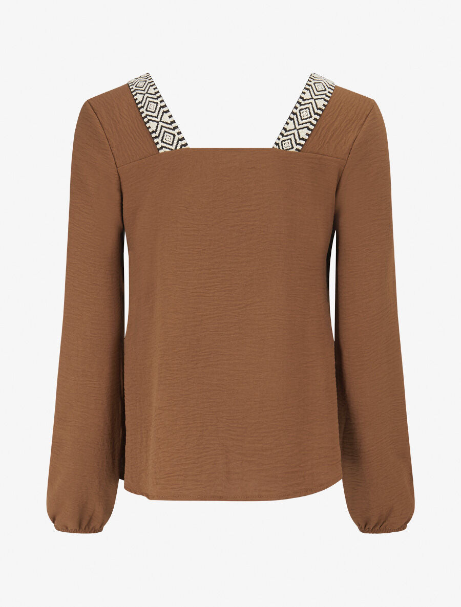 Découvrez ce top taupe à l'imprimé fantaisie qui apporte une touche d'originalité à votre dressing. Sa coupe droite et son encolure carrée structurent élégamment la silhouette, tandis que les manches longues à poignets élastiqués assurent un confort optimal. Confectionné en Italie avec soin, ce haut en polyester se distingue par sa qualité de fabrication. Parfait pour composer des tenues décontractées comme plus travaillées, il s'associe facilement à un pantalon ou une jupe pour un look moderne et raffiné au quotidien.