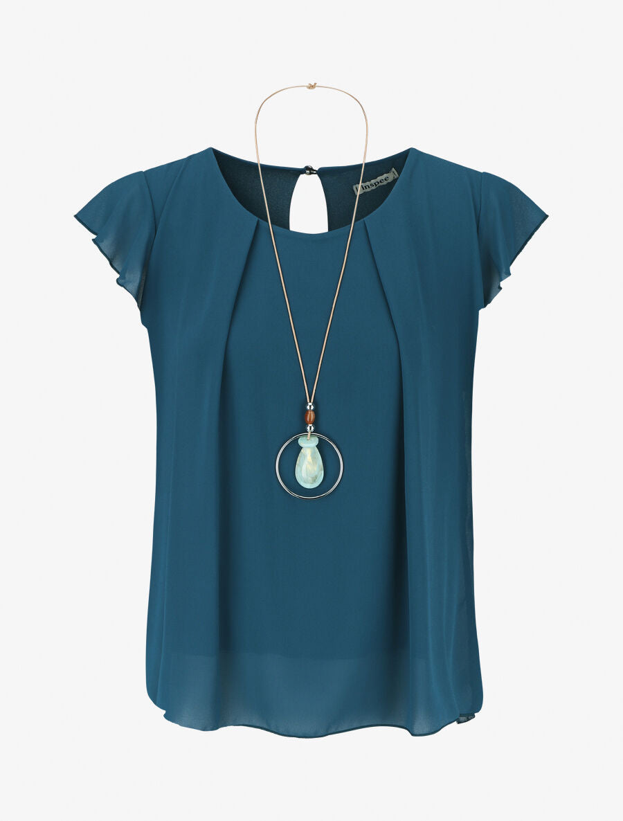 Top voile mancherons volantés dos ouvert - Bleu canard