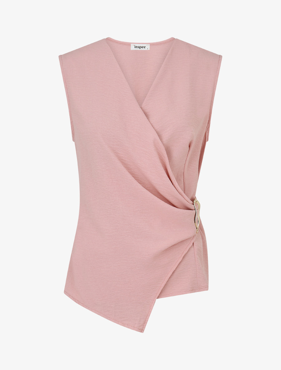 Top portfeuille col cache-cœur asymétrique - Vieux rose
