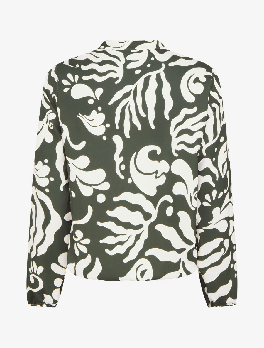 Découvrez ce top à la coupe boule sophistiquée, orné d'un imprimé graphique distinctif qui apporte une touche moderne à votre garde-robe. Son encolure en V flatteuse et ses manches longues aux poignets élastiqués offrent un confort optimal tout au long de la journée. Les bords élastiqués assurent un tombé impeccable et une silhouette harmonieuse. Confectionné en Italie avec un savoir-faire reconnu, ce top en polyester se distingue par sa qualité et sa finition soignée. Parfait pour sublimer vos tenues quotidiennes comme vos looks plus élaborés, il s'associe idéalement avec un pantalon fluide ou un jean brut.