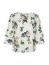 Ce top imprimé fleuri associe élégance botanique et modernité grâce à son motif floral aux nuances vertes, bleues et beiges sur fond blanc immaculé. Les manches 3/4 se distinguent par leurs volants superposés qui apportent une touche féminine et dynamique. L'encolure ronde assure un confort optimal tandis que la coupe fluide garantit une liberté de mouvement absolue. Fabriqué en Italie avec un savoir-faire reconnu, ce haut se porte aussi bien au bureau avec un pantalon tailleur qu'en version décontractée avec un jean. Sa longueur de 62 cm offre une couverture parfaite pour toutes les morphologies.