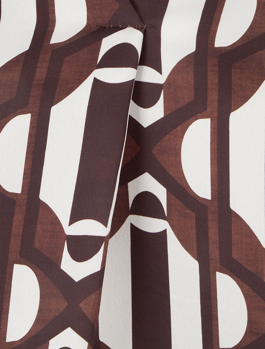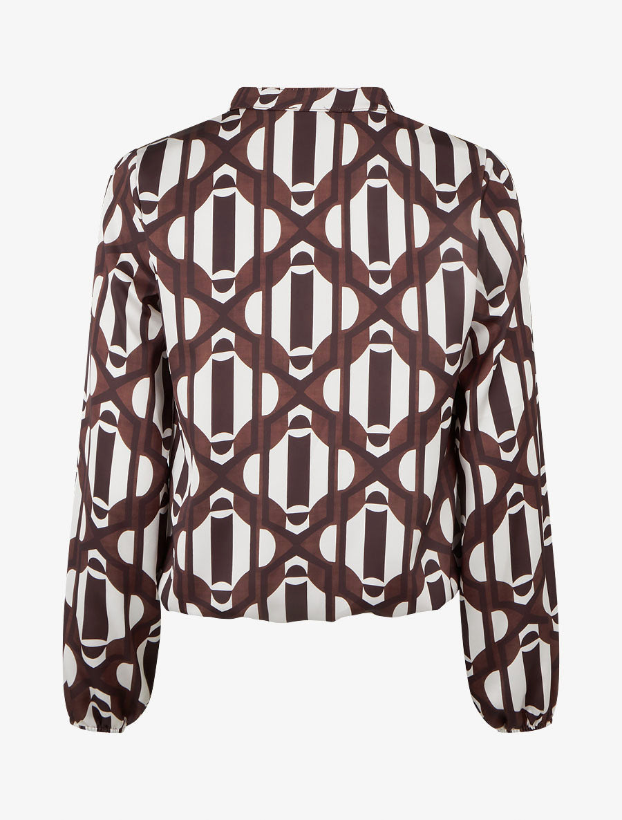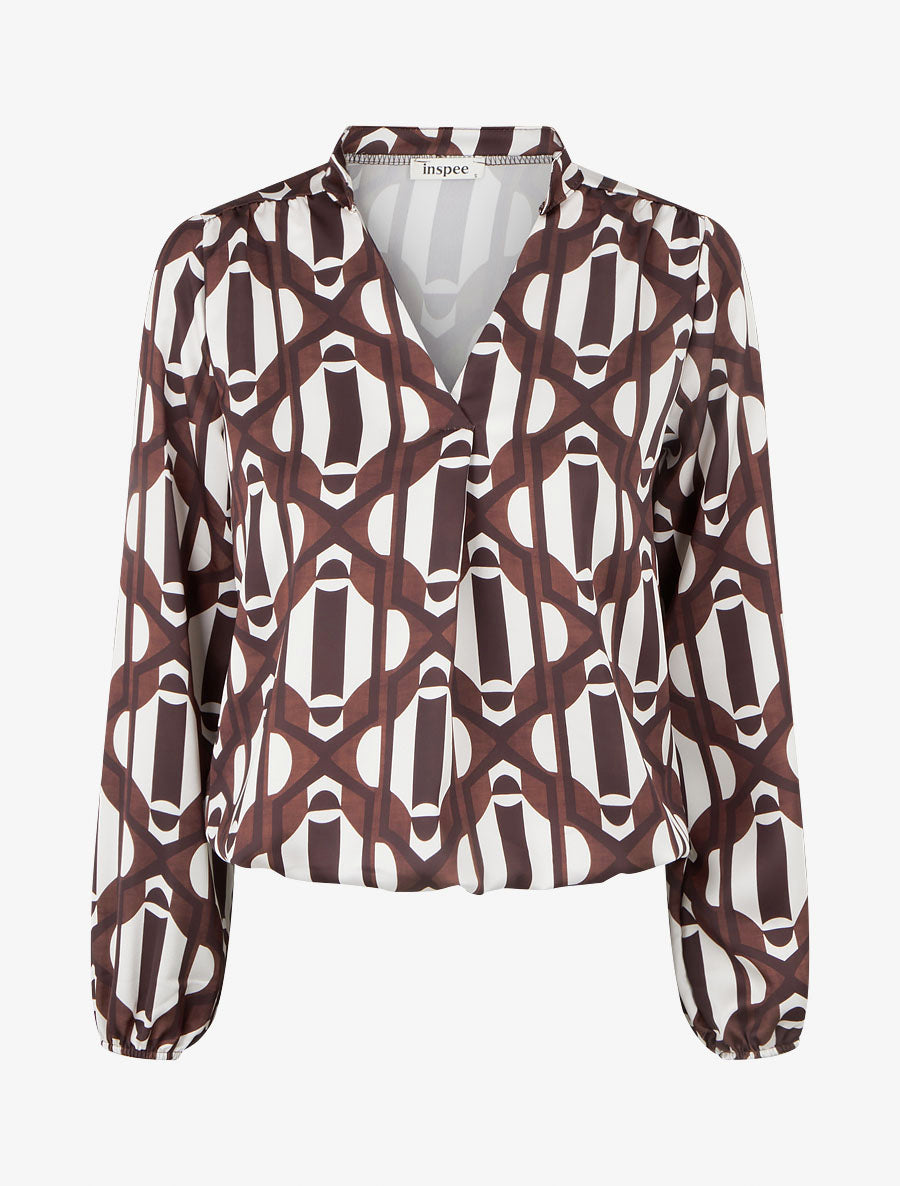 Succombez au charme rétro de ce top fluide marron à la coupe boule flatteuse. Son col tunisien apporte une touche d'originalité tandis que ses manches longues avec poignets élastiqués assurent un maintien parfait. L'imprimé vintage confère une allure unique à cette pièce fabriquée en Italie. Les bords élastiqués garantissent un tombé impeccable pour un confort optimal tout au long de la journée. Une création raffinée qui sublime votre garde-robe avec authenticité et caractère.