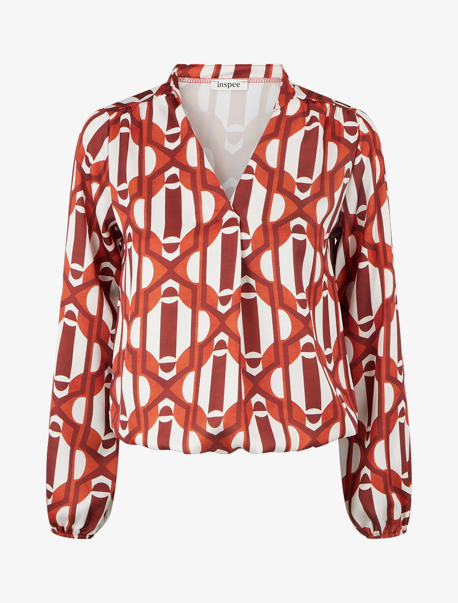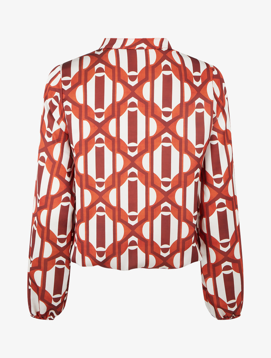 Top fluide imprimé rétro col tunisien - Orange