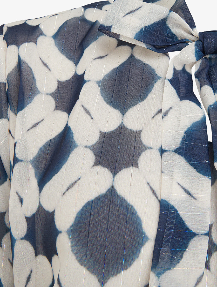 Ce top en voile transparent sublime votre silhouette grâce à sa coupe droite intemporelle et son imprimé graphique raffiné. Le col lavallière apporte une touche romantique, tandis que les manches longues à poignets élastiqués assurent un confort optimal. Les liserés irisés captent subtilement la lumière pour un effet sophistiqué. Entièrement doublé, ce modèle fabriqué en Italie se porte aussi bien au bureau qu'en soirée. Une pièce polyvalente qui rehausse instantanément vos tenues avec élégance et modernité.