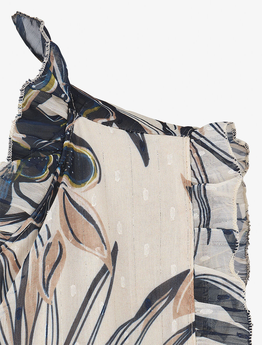 Top fluide col volants imprimé fleuri - Marine