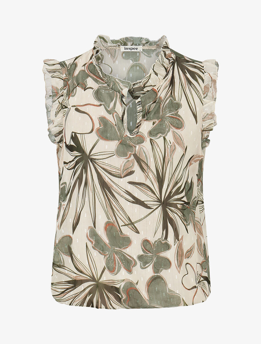 Top sans manches irisé imprimé fleuri - Kaki - 3