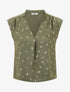 Succombez à ce top kaki orné d'un élégant motif plumes dorées qui apporte une touche précieuse à votre silhouette. Sa coupe boule flatteuse et son col V féminin subliment la morphologie, tandis que les mancherons ajoutent une note délicate. Les bords élastiqués garantissent un maintien confortable tout au long de la journée. Fabriqué en Italie avec une attention particulière aux finitions, ce haut polyvalent se porte aussi bien au quotidien qu'en soirée. Une pièce raffinée qui illumine instantanément vos tenues estivales.