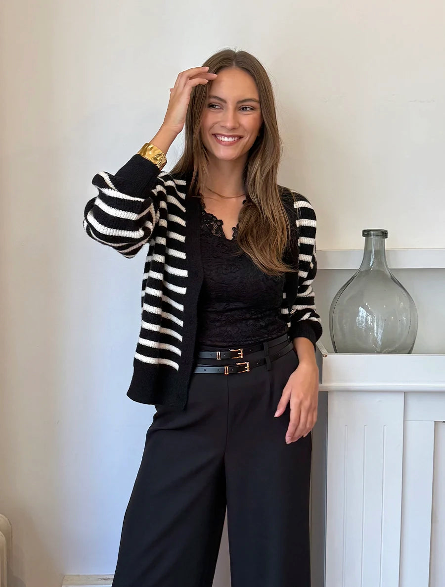Succombez à l'élégance intemporelle de ce top en dentelle raffinée, confectionné avec soin en Italie. Sa coupe droite flatteuse et son col V féminin subliment la silhouette avec délicatesse. Les manches longues apportent une touche sophistiquée, tandis que la doublure intérieure garantit un confort optimal tout au long de la journée. Parfait pour vos soirées distinguées ou vos rendez-vous professionnels, ce haut se marie harmonieusement avec un pantalon tailleur ou une jupe crayon. Une pièce incontournable qui traverse les saisons avec style.