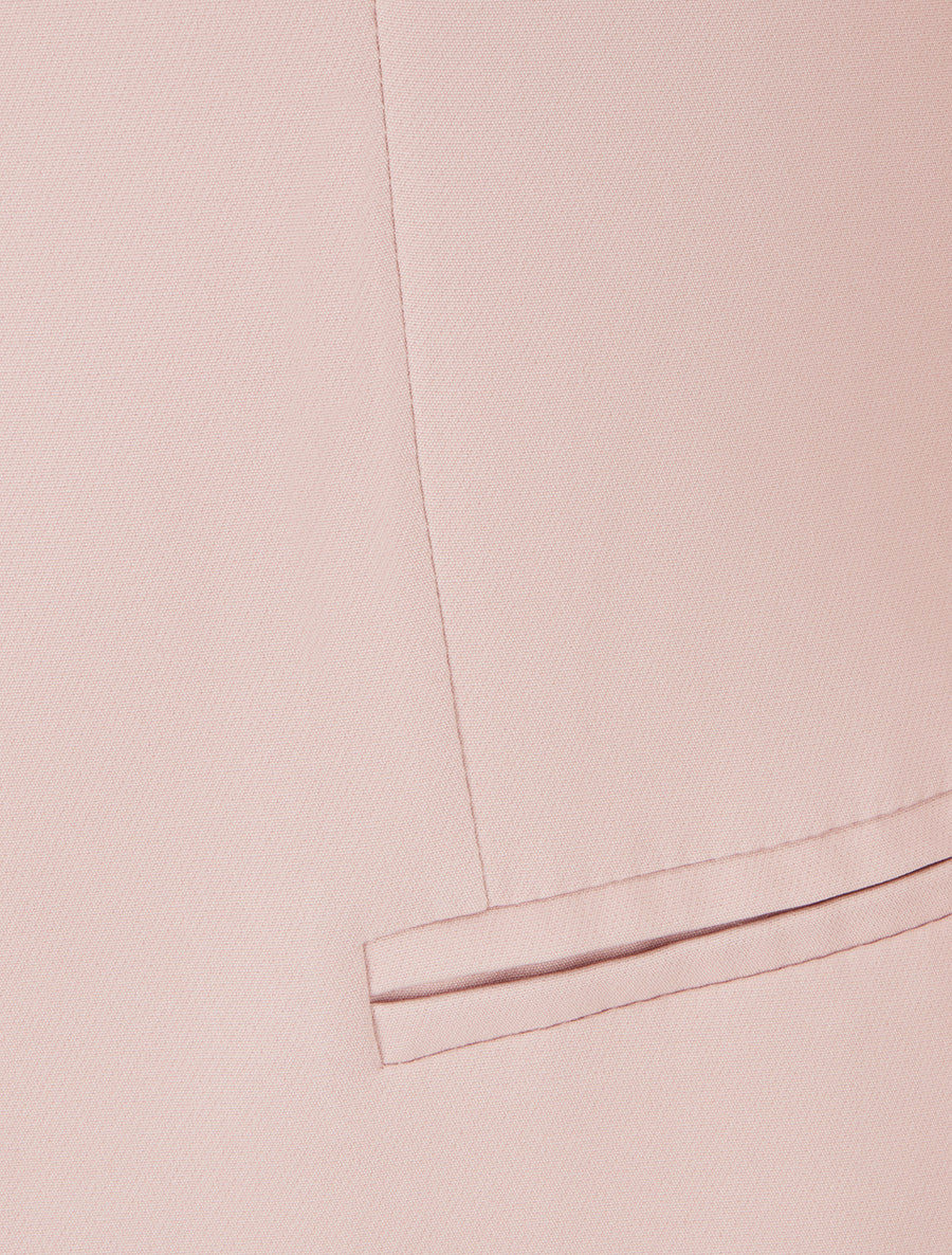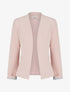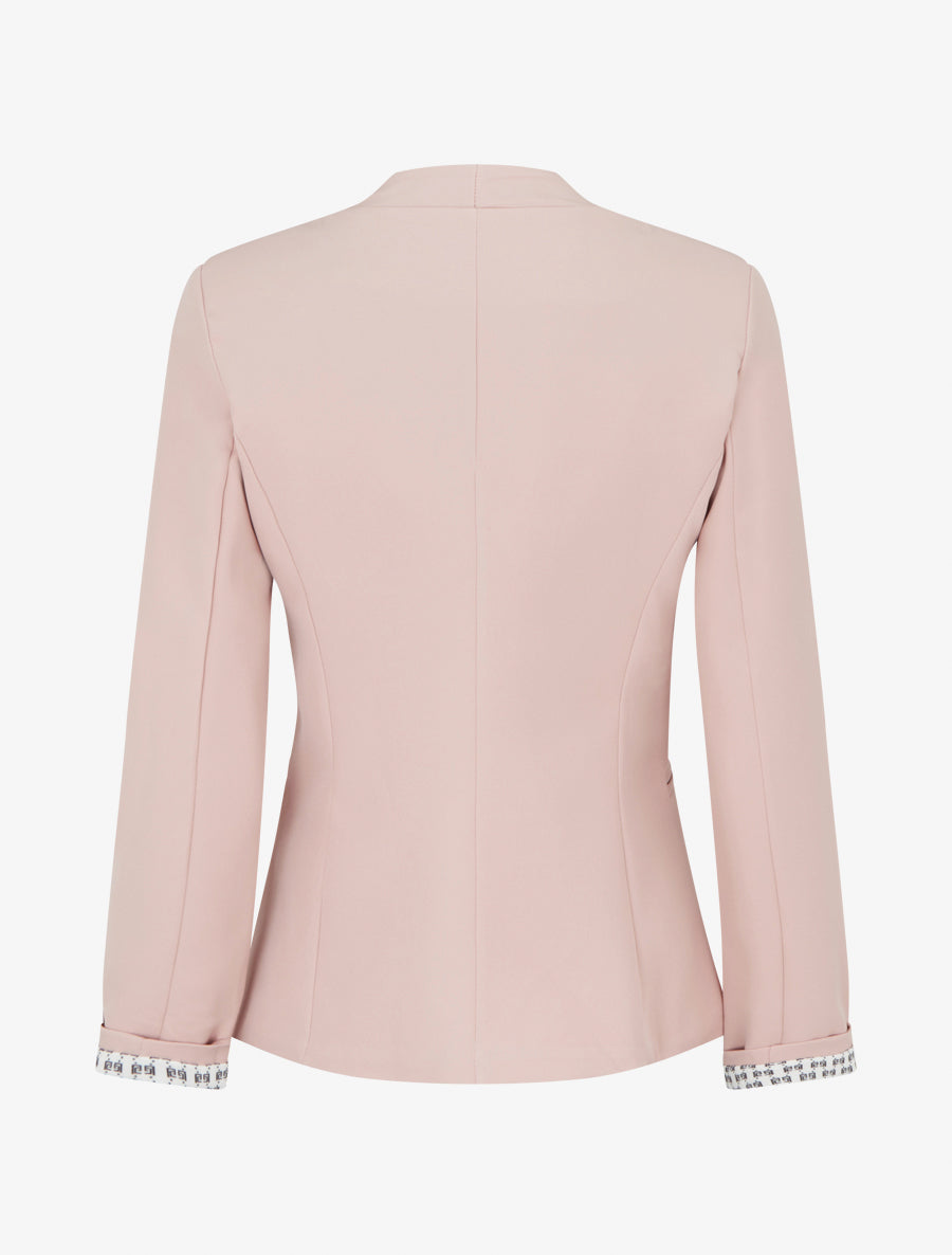 Adoptez cette veste droite rose poudré, pièce incontournable de votre garde-robe professionnelle et décontractée. Sa coupe structurée avec épaulettes affirme votre silhouette tandis que ses poignets à revers imprimé graphique apportent une touche d'originalité. Le col droit et les deux poches décoratives renforcent son allure raffinée. Entièrement doublée et confectionnée en Italie, cette veste ouverte se porte aussi bien sur un chemisier pour le bureau que sur un tee-shirt pour un look casual chic. Un essentiel polyvalent qui traverse les saisons avec style.