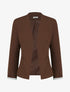 Cette veste marron allie élégance intemporelle et détails contemporains. Sa coupe droite structurée est sublimée par des épaulettes affirmées et des poignets à revers imprimés graphiques qui apportent une touche d'originalité. Le col droit et les deux poches décoratives complètent harmonieusement ce modèle ouvert doublé. Confectionnée en Italie dans une matière stretch confortable, elle se porte aussi bien sur un pantalon tailleur au bureau que sur un jean pour un look décontracté chic. Une pièce polyvalente qui structure instantanément toutes vos tenues.