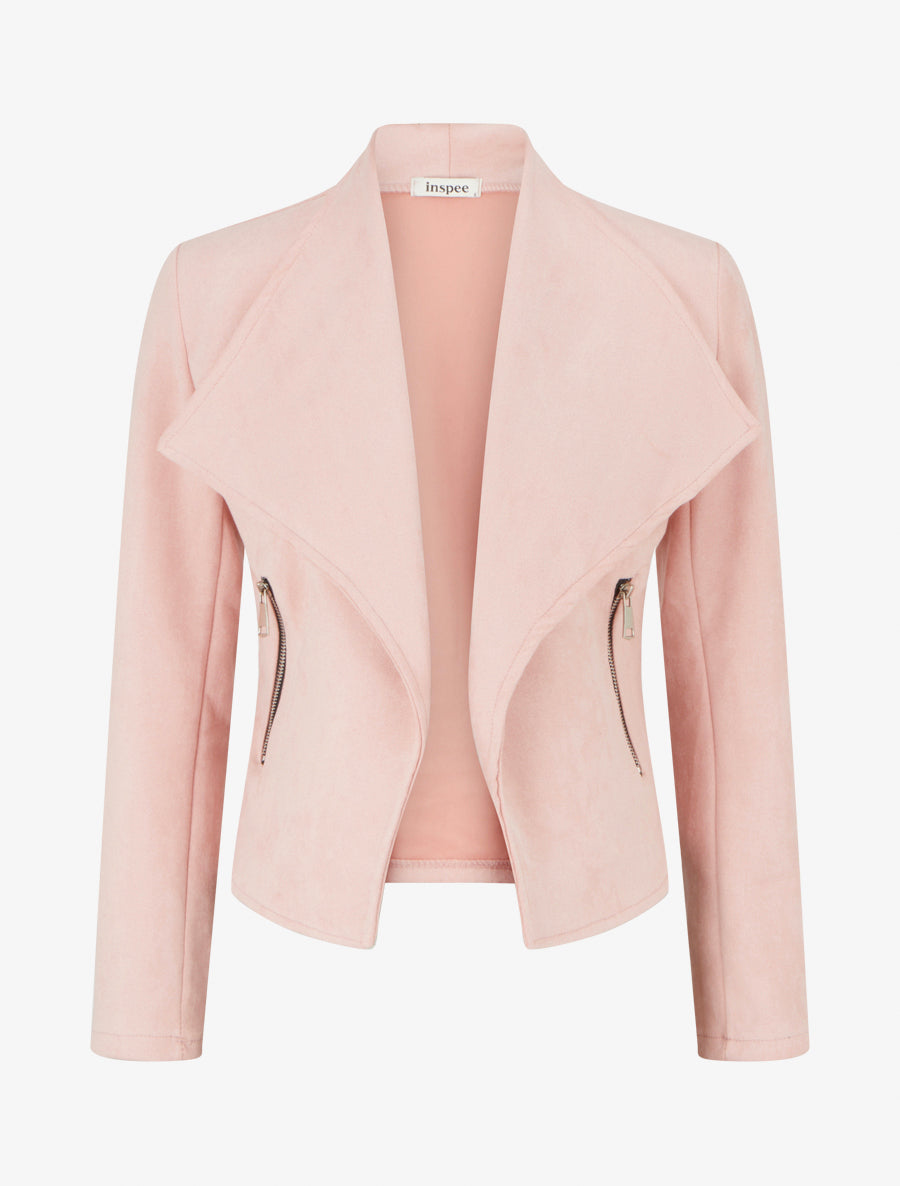 Veste en suédine à poches décoratives zippées - Rose - 1